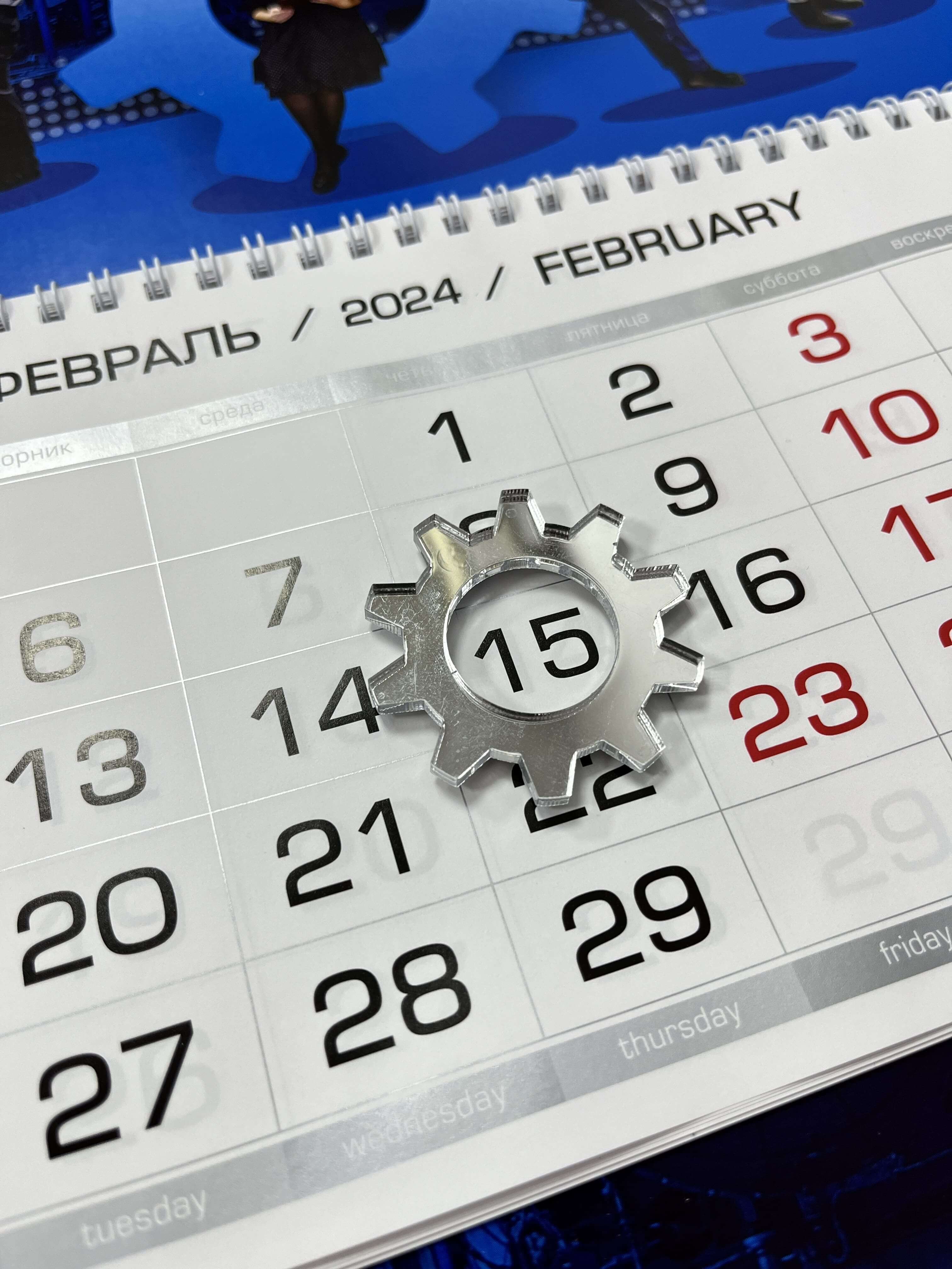 1) В виде металлического листа с клеевым слоем (255х130мм), который клеится к подложке календаря - 160 руб.