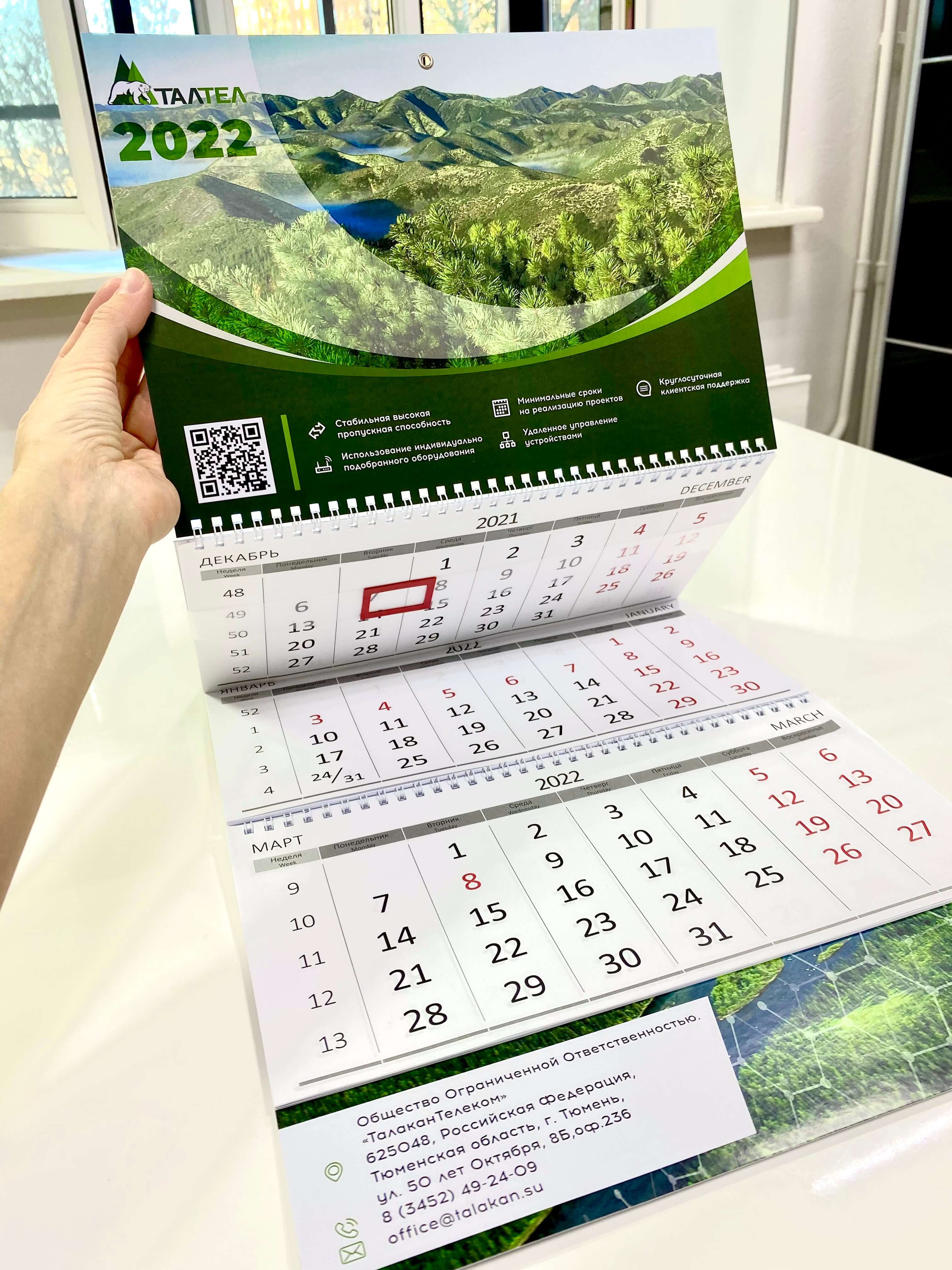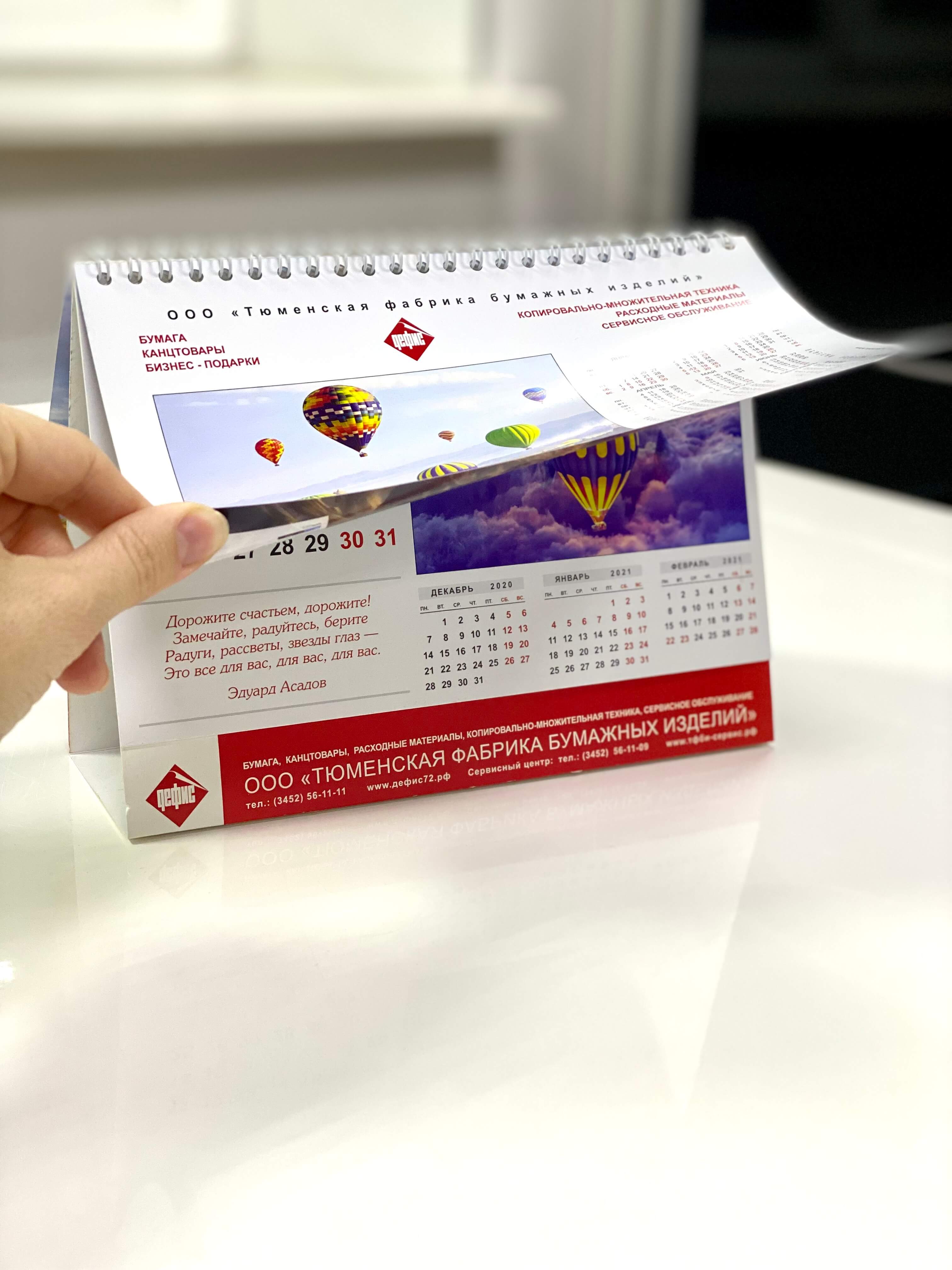 Производство и печать календарей квартальных, карманных, домиков с логотипом от крупнейшей типографии в Тюменской области.